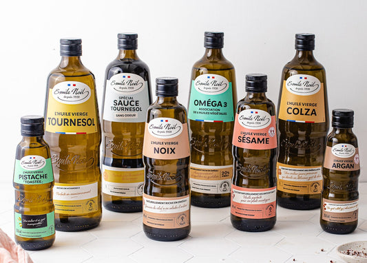 Huiles, condiments, tartinables et tartines sans glutenEntreprise familiale depuis 1920, Émile Noël a un maître mot depuis la création de son huilerie : « pour faire de bonnes huiles, il faut de bonnes graines ».