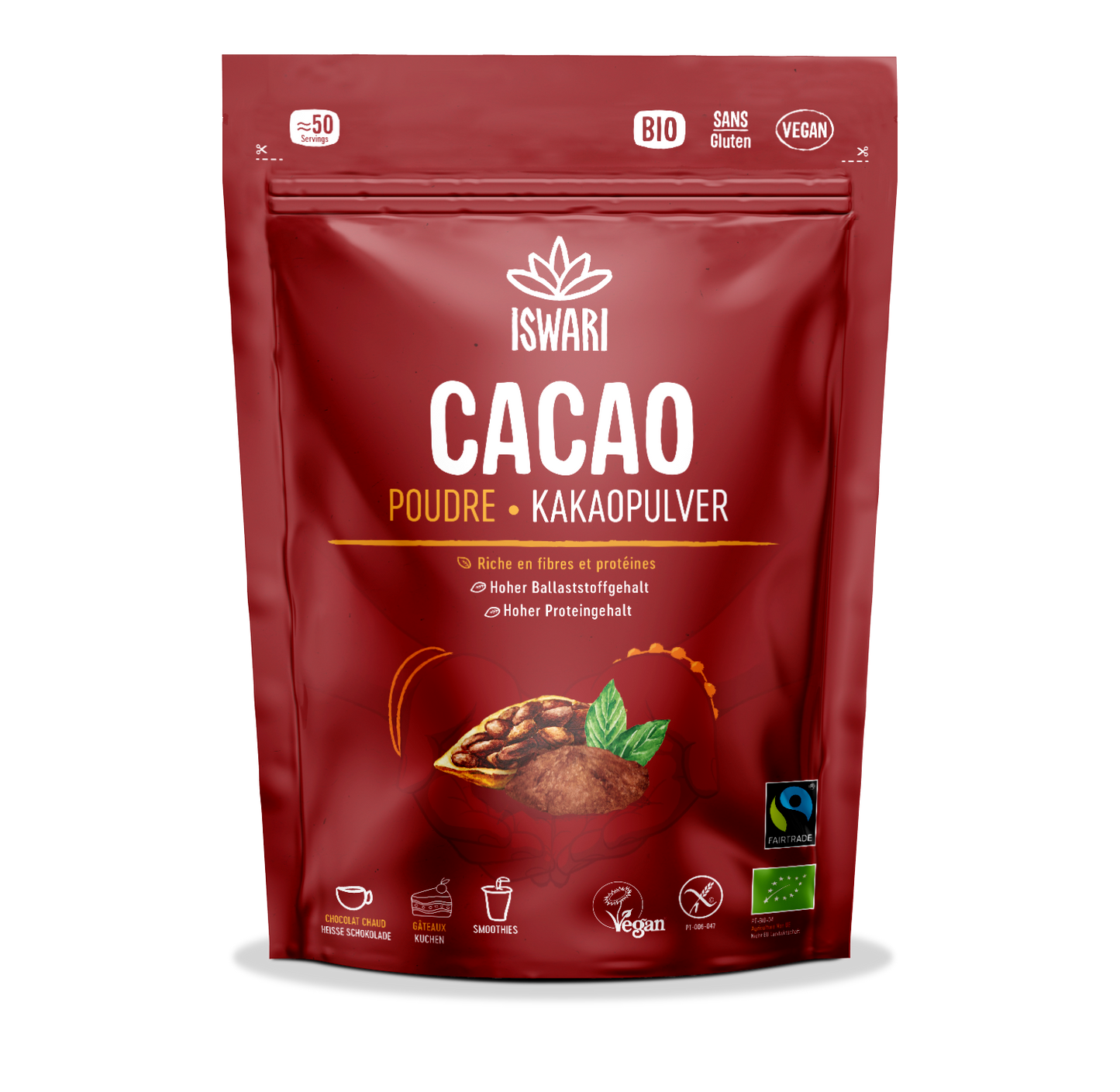 Ajoutez 1 à 3 cuillères à café aux smoothies/jus, pâtisseries crues ou chocolat.