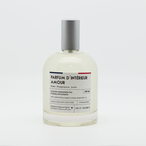 Le parfum d'intérieur Amour fait partie de la gamme de 9 parfums d'intérieur bien-être de Jolis Baumes. Ils sont fabriqués à la main, de façon artisanale dans notre atelier en Auvergne.