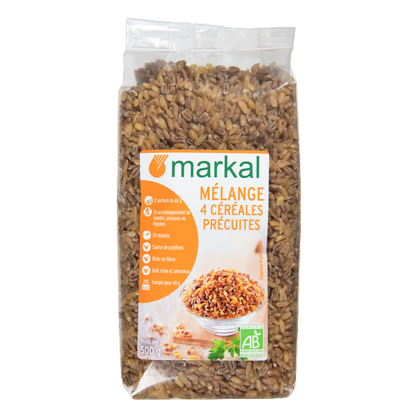 Riche en fibres et source de protéines, céréales précuites pour une cuisson plus rapide (20 min).