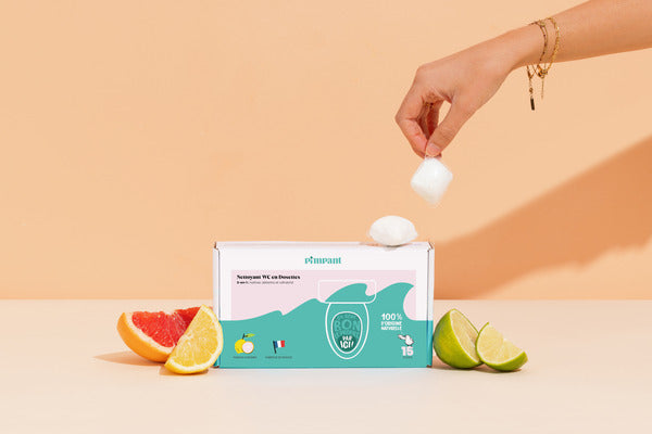 Découvrez notre nettoyant WC écologique qui coupe la chique au plastique ! Composé d’ingrédients 100% d’origine naturelle, doté un film biodégradable et d’un parfum agrumes pétillant, ce nettoyant WC sous forme de dosette nettoie, détartre et rafraîchit.