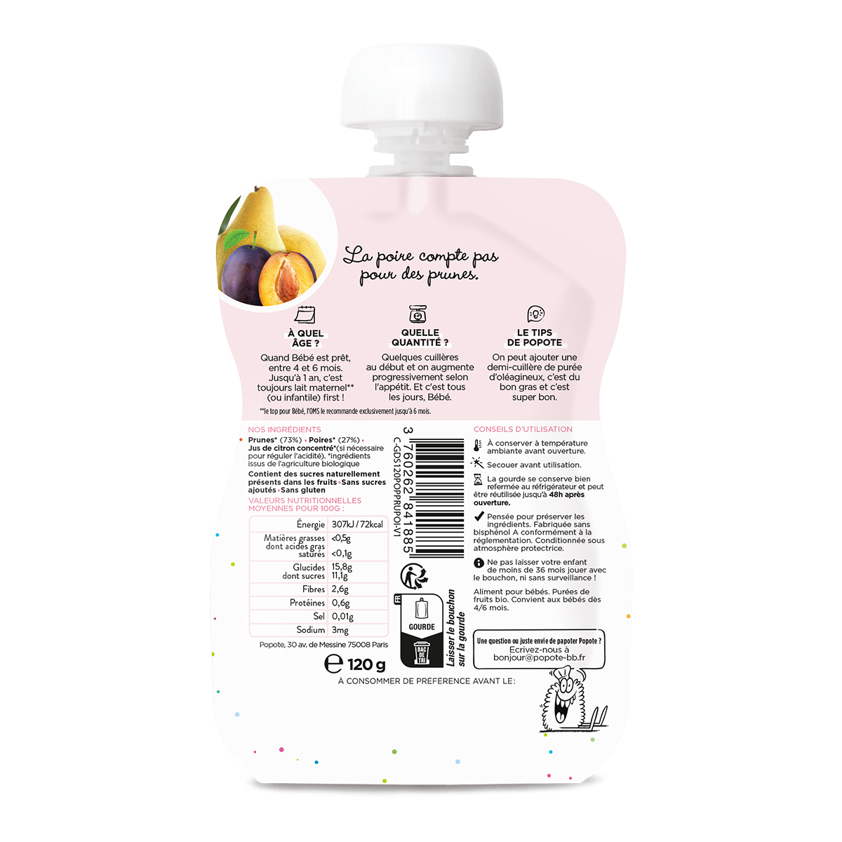 Secouer avant utilisation. Pensée pour préserver les ingrédients. Fabriquée sans bisphénol A conformément à la réglementation. Conditionnée sous atmosphère protectrice. Ne pas laisser votre enfant de moins de 26 mois jouer avec le bouchon, ni sans surveillance!