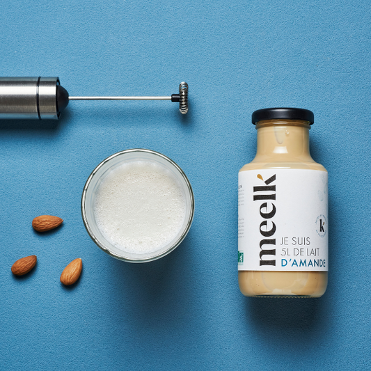Meelk est le premier concentré 100% amandes ou noisettes à mélanger chez soi avec de l’eau pour obtenir un lait végétal maison délicieux ! Déçue par les boissons végétales du commerce, au goût très dilué - 97% d’eau - et remplies d’additifs, la marque a imaginé une solution plus saine et super gourmande. Ainsi est née Meelk, la première boisson végétale bio à diluer facilement chez soi, réalisée avec un seul ingrédient pour redécouvrir le vrai goût des amandes ou des noisettes.